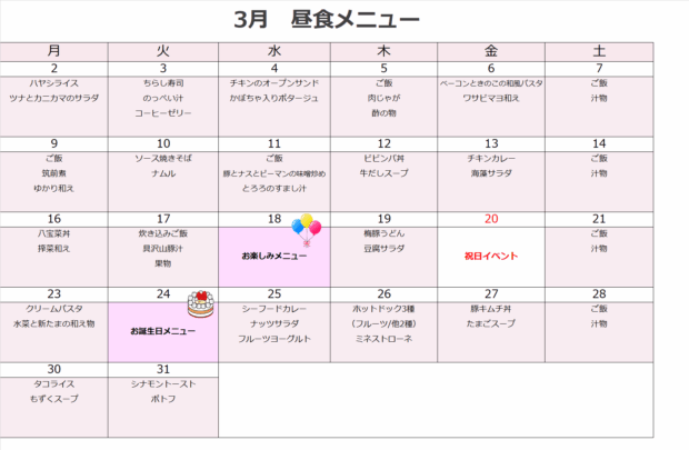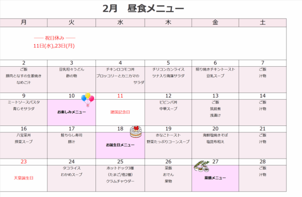 デイケア月間メニュー