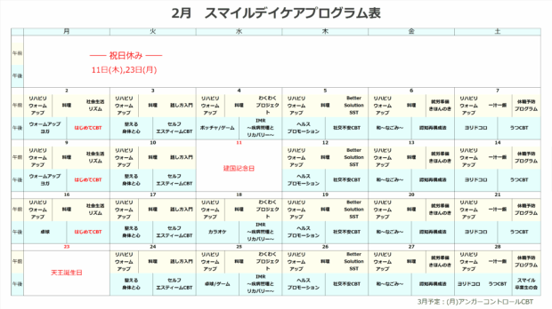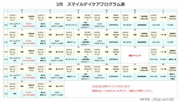 デイケア月間予定表