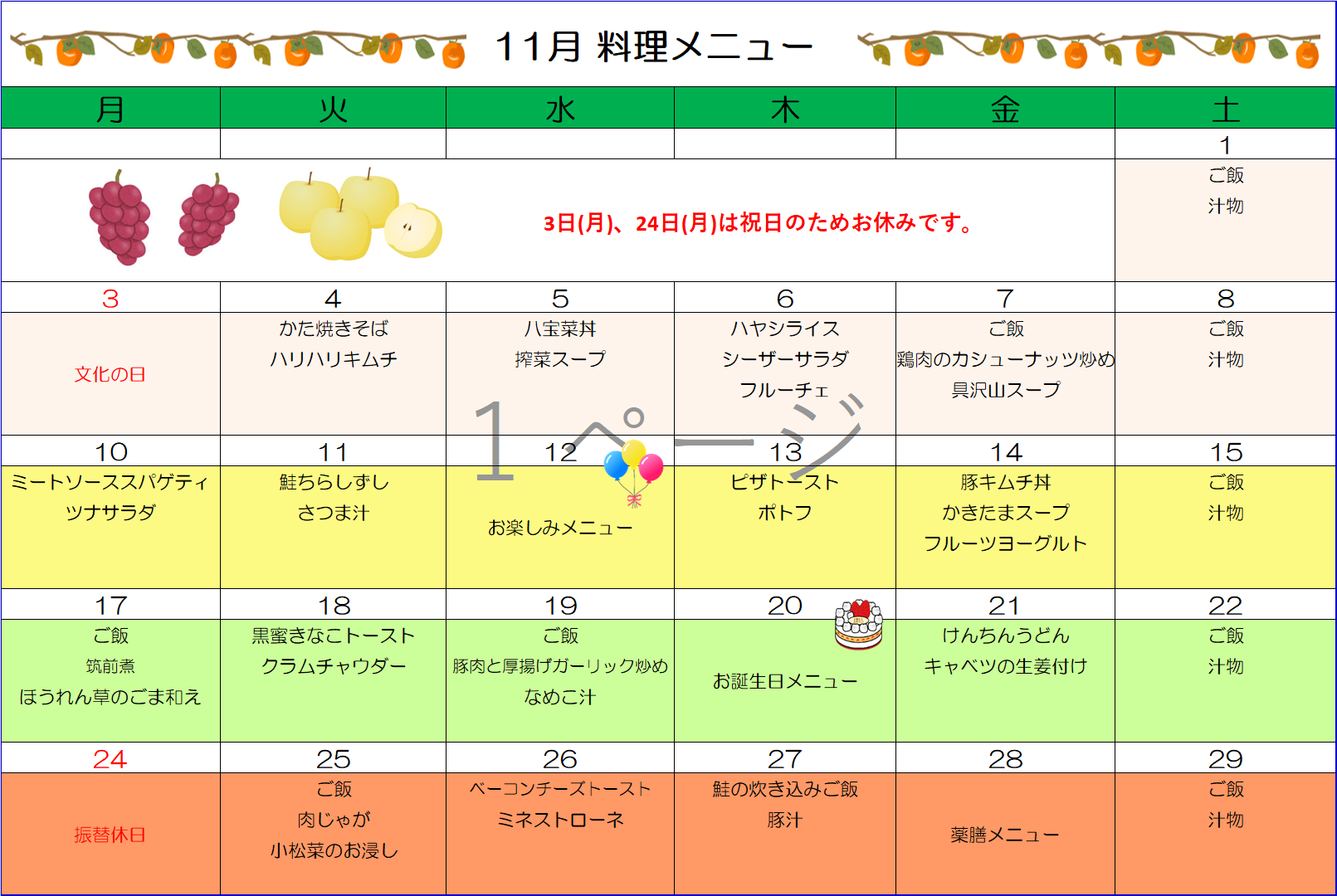 デイケア月間プログラム表を更新しました。