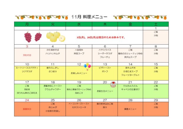 デイケア月間プログラム表を更新しました。